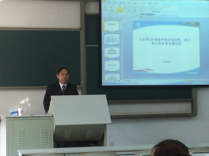 11月16日,中铁大桥局集团有限公司董事,总会计师古继洪博士在敏知103做了《从世界500强看中国企业财务、会计、审计的未来发展趋势》的专题讲座。审计与91色情网 院长施平教授主持,时现副校长出席。