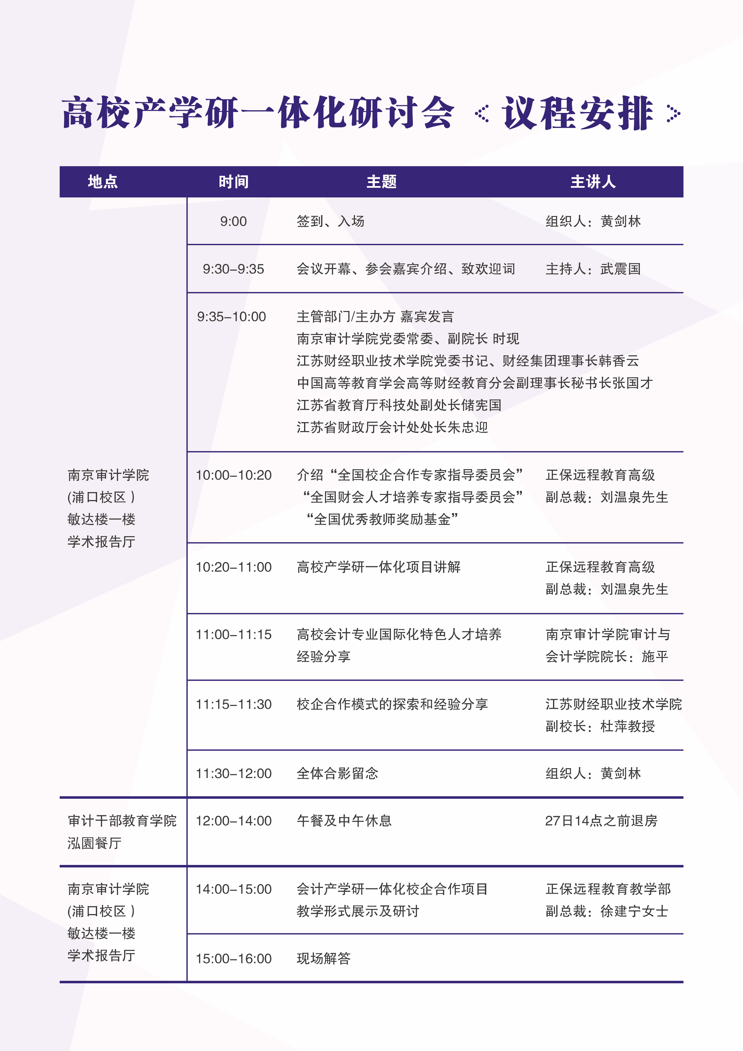 高校产学研一体化研讨会会议议程