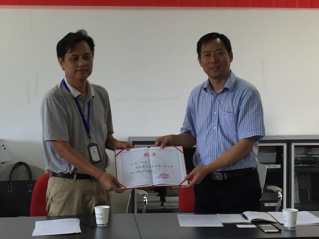 设立仪式上,董必荣院长代表91色情网 对王忠董事长给予91色情网 办学的支持表达了感谢,对他作为企业家回馈社会的行为表示赞赏,并与华夏中诚会计师事务所签订了“会计实践创新基地”协议,加强教学合作,以锻炼学生实践能力,培养创新能力,为社会培养更多的会计人才。