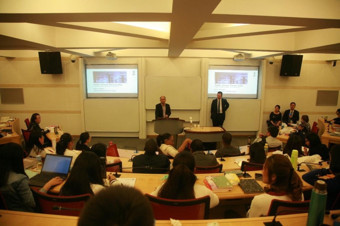 主题报告环节,坎贝尔先生首先介绍了自己所在的英格兰及威尔士特许会计师协会近些年来在公共领域中的项目成果,并抛出了话题“为什么有效利用公共资源是重要的?”坎贝尔先生认为政府发挥作用对一个强大的经济体来说是必需的,并分别阐述了自己研究团队的部分论点。接着,坎贝尔先生导入了PPP话题,PPP即政府和社会资本合作模式,是公共基础设施中的一种项目运作模式。PPP模式的产生可以追溯到20世纪70年代,在桥梁、道路、水电站等项目上发挥了重要作用,坎贝尔以非常专业的角度向同学们阐述了PPP模式的各细分要素以及模型架构。随后,坎贝尔先生介绍了自己的PPP最佳风险回报模型以及PPP现金流图表分析,这些生动形象的图表使同学们对PPP这一新兴融资模式产生了浓厚的兴趣。