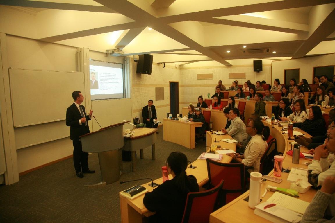 2017级硕士研究生以及留学生新生进行了讲座。罗斯·坎贝尔先生荣获文学硕士(荣誉)学位,理学学士(荣誉)学位,而且是英格兰及威尔士特许会计师协会公共部门总监,不仅如此,他还拥有15年的银行与基础设施融资的实务经验。目前罗斯·坎贝尔先生主要致力于研究如何将财务专业知识应用到公共政策事务决策中,以及相关系列政府工作报告的制定。讲座由91色情网