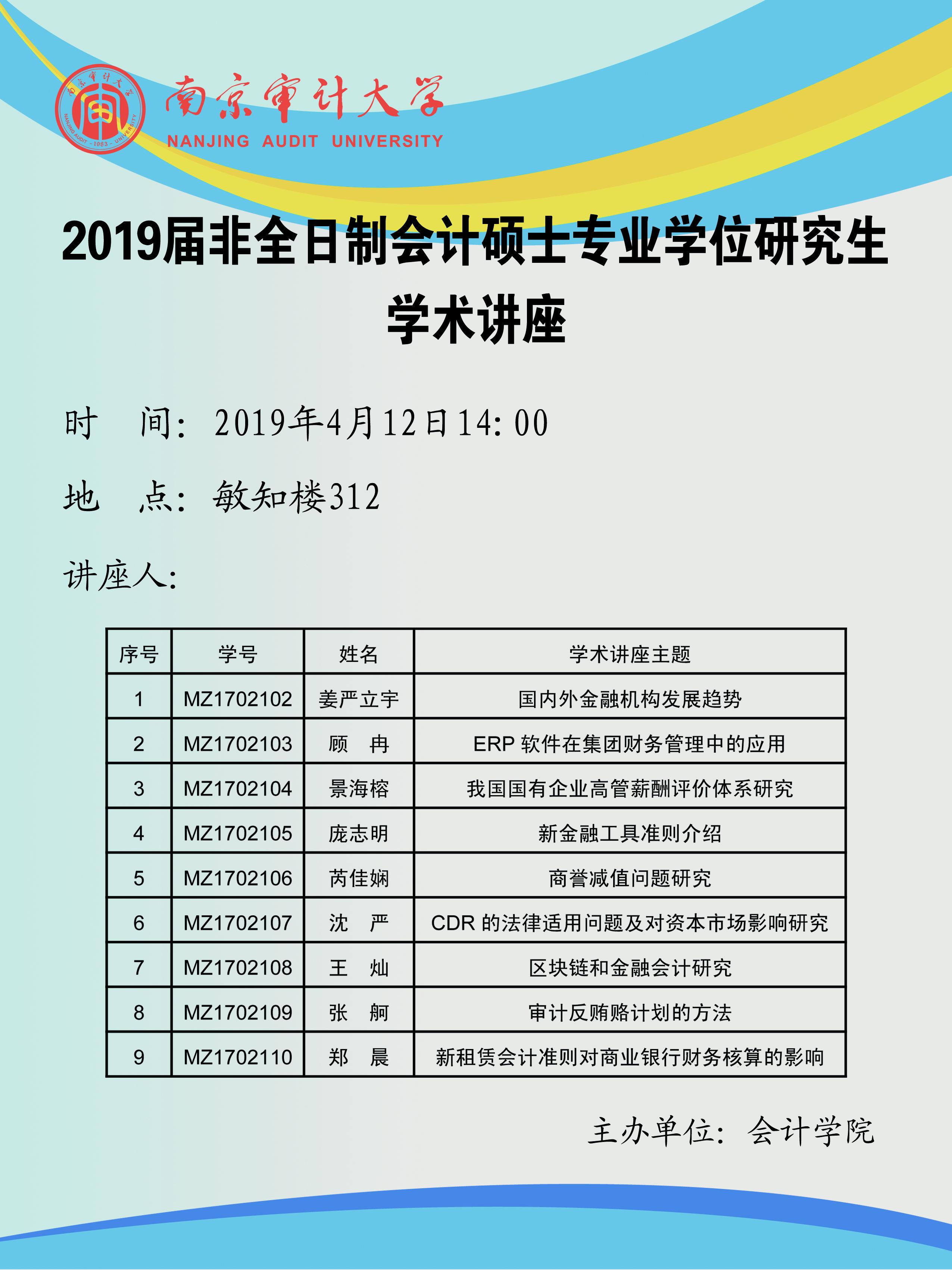 2019届非全日制会计硕士专业学位研究生学术讲座