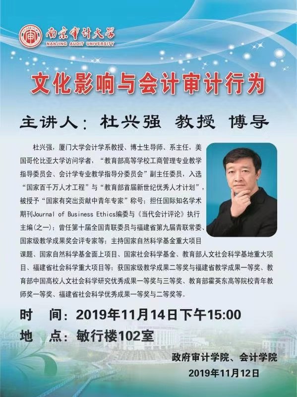 杜兴强:文化影响与会计审计行为