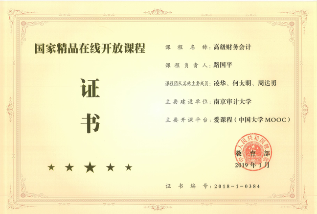 他作为课程负责人的在线开放课程《高级财务会计》(中国大学MOOC)成为一百多所高校成千上万学生线上学习课程,并于2017年获“江苏省在线开放课程”,2018年获“国家精品在线开放课程”,成为名副其实的线上“金课”。