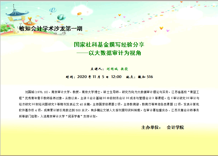 刘国城:国家社科基金撰写经验分享——以大数据审计为视角