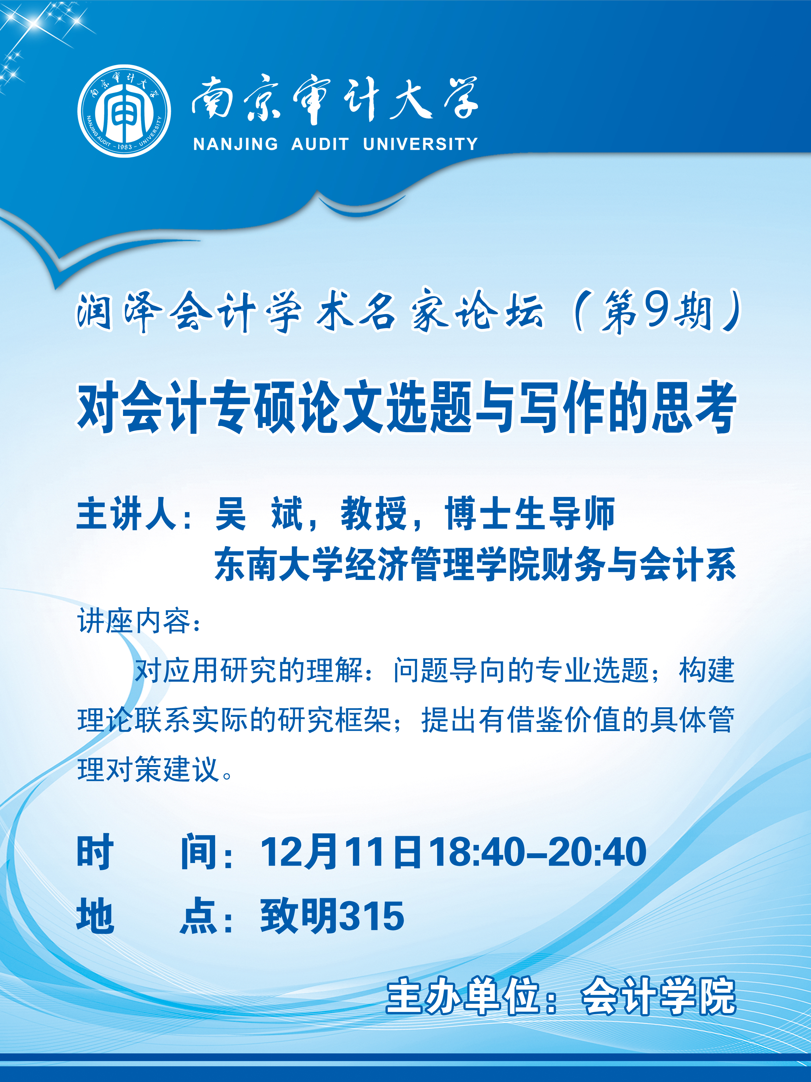 润泽会计学术名家论坛第9期:吴斌-对会计专硕论文选题与写作的思考