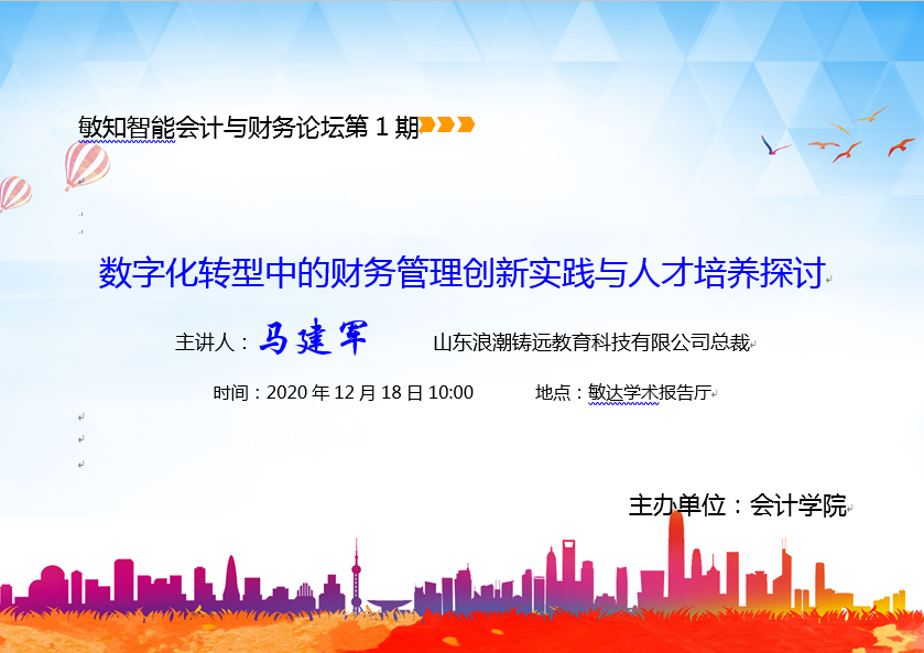 敏知智能会计与财务论坛第1期:马建军-数字化转型中的财务管理创新实践与人才培养探讨