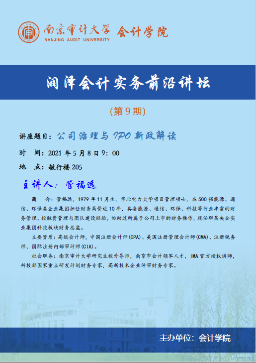 润泽会计实务前沿讲坛第9期:管福远-公司治理与IPO新政解读