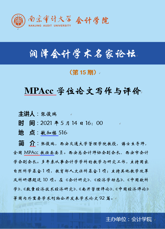 润泽会计学术名家论坛第15期:张俊瑞-MPAcc学位论文写作与评价