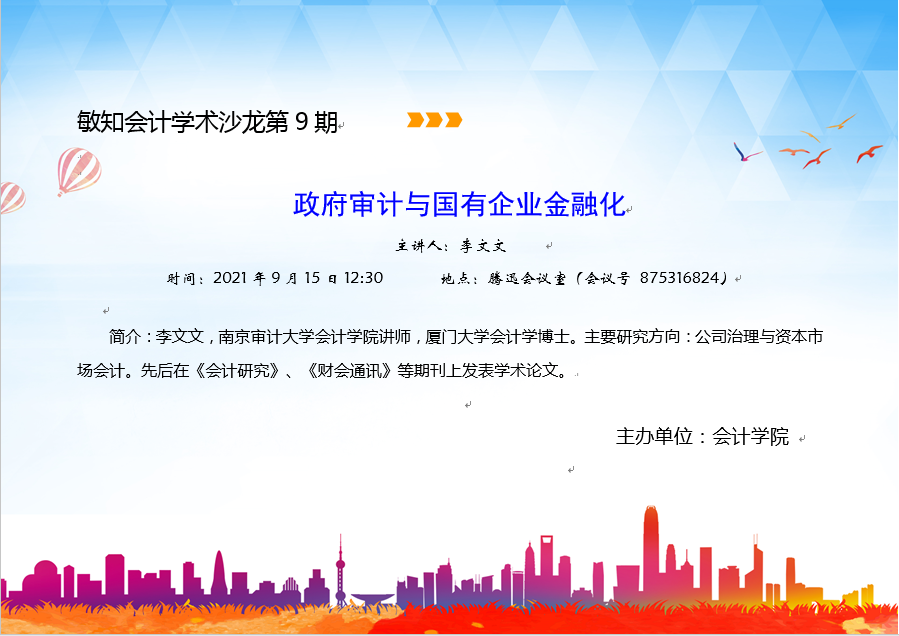 敏知会计学术沙龙第9期:李文文-政府审计与国有企业金融化