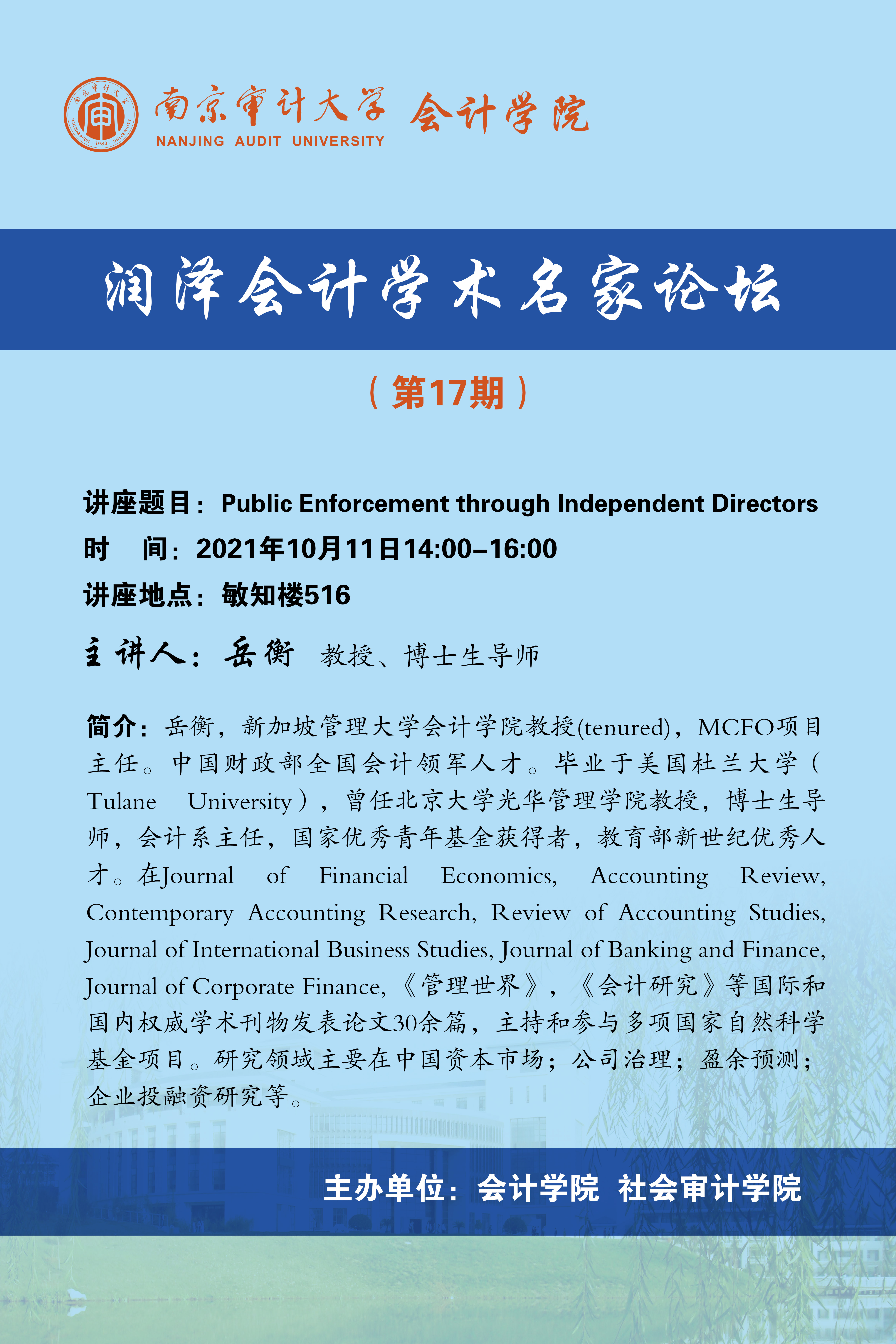 润泽会计学术名家论坛第17期:岳衡-Public Enforcement through Independent Directors