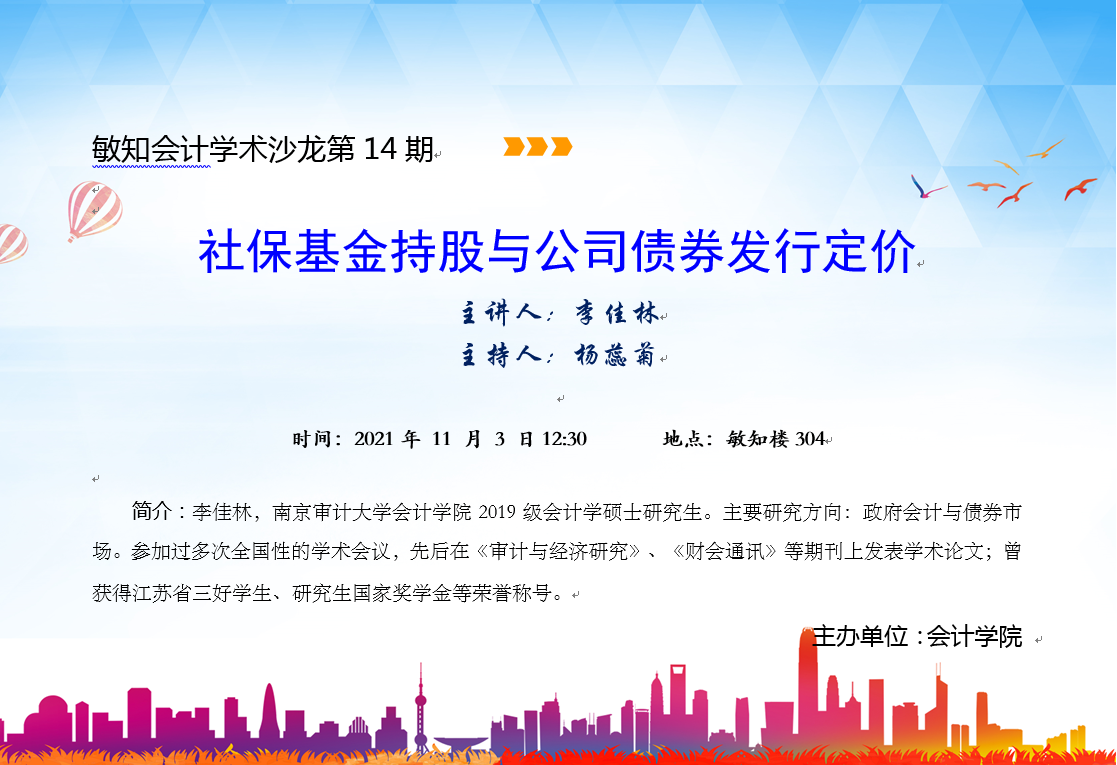 敏知会计学术沙龙第14期:李佳林-社保基金持股与公司债券发行定价