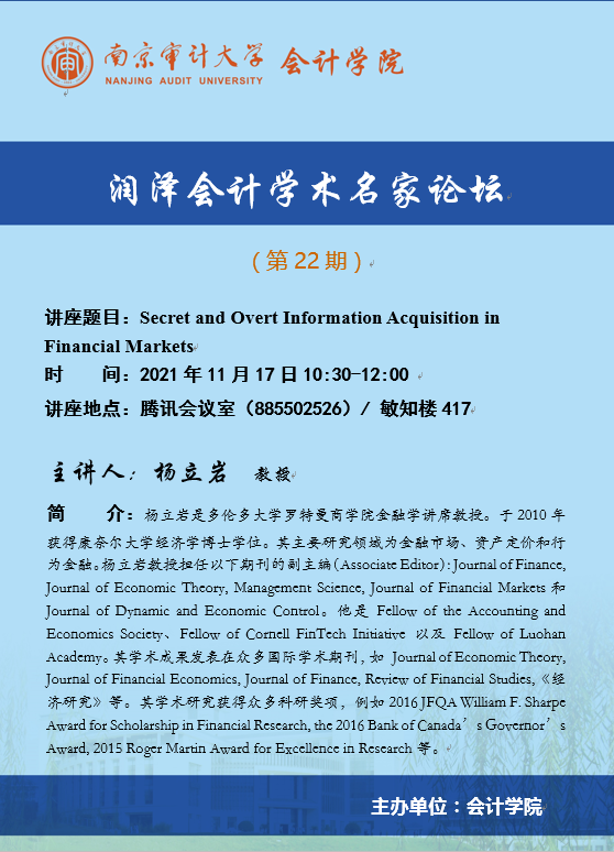 润泽会计学术名家论坛第22期:杨立岩-Secret and Overt Information Acquisition in Financial Markets