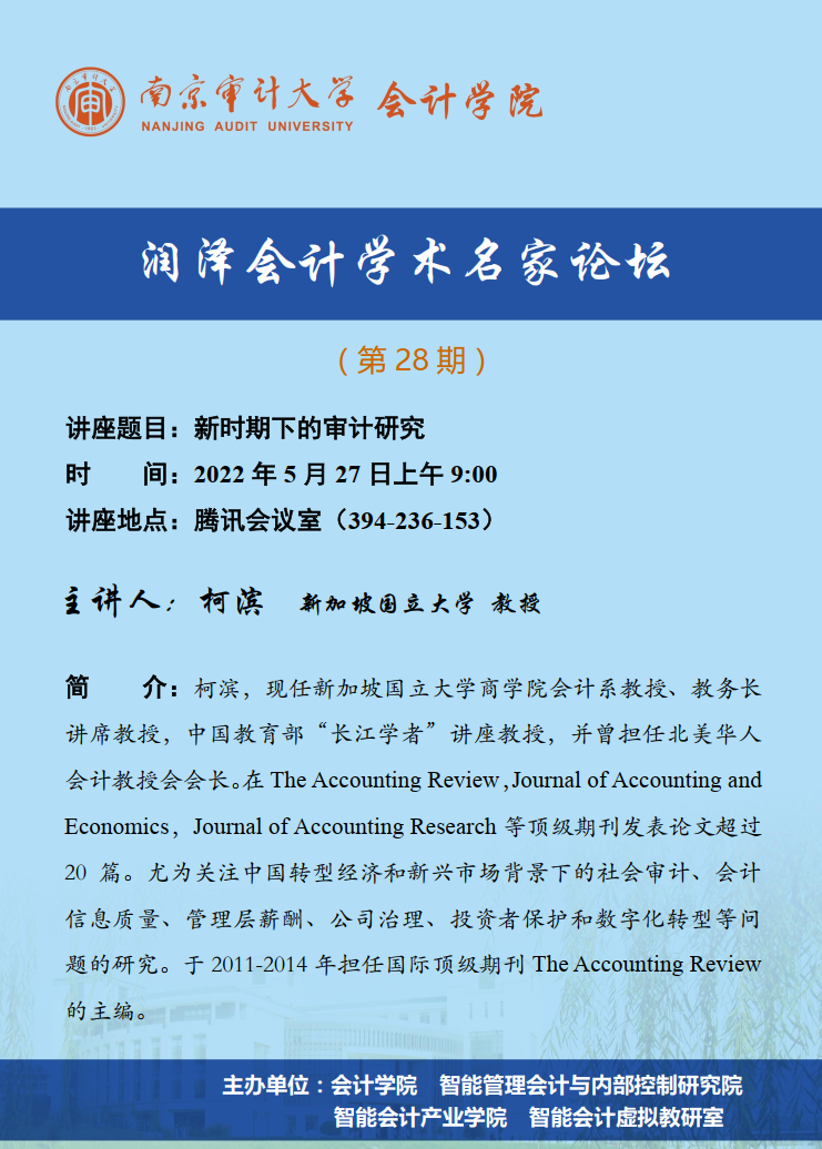 润泽会计学术名家论坛第28期:柯滨-新时期下的审计研究