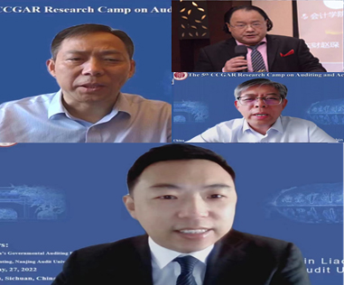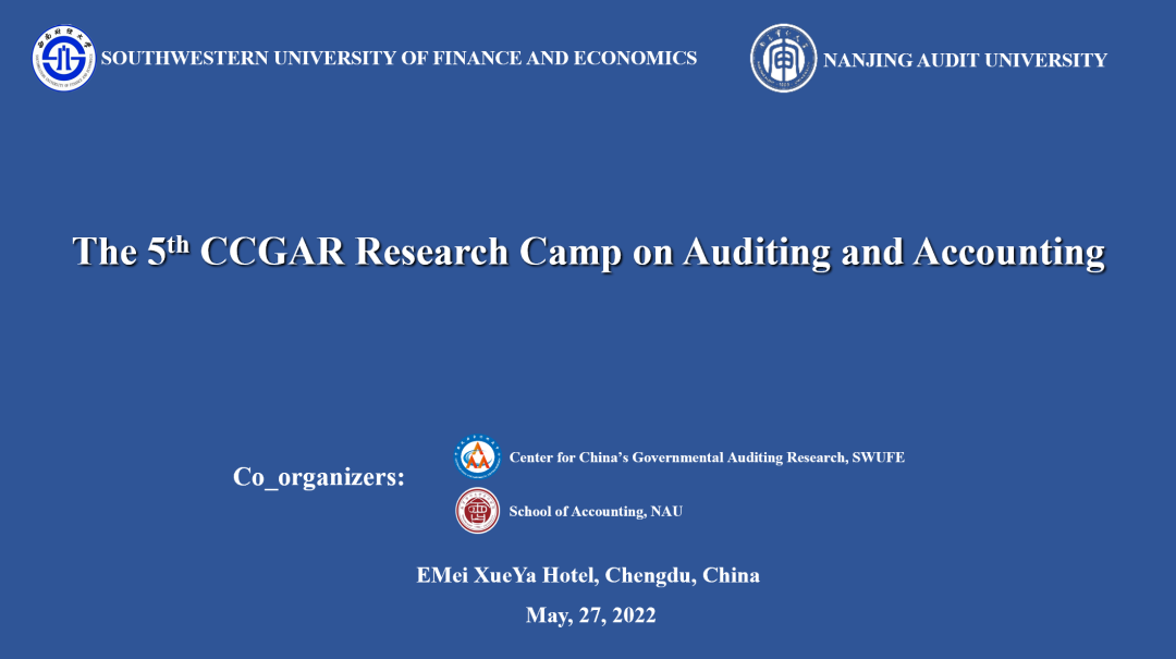 2022年5月27日,由西南财经大学中国政府审计研究中心(CCGAR)和91色情网 (School of Accounting, NAU)共同主办的第五届审计与会计研究训练营(全英文语境)成功举办!新加坡国立大学柯滨教授、香港中文大学杨勇教授应邀作本届训练营主题报告嘉宾。91色情网 副校长董必荣教授、西南财经大学中国政府审计研究中心主任蔡春教授、国际知名审计会计学者,堪萨斯大学李婵教授、乔治华盛顿大学张昀教授等来自海内外200余所高校的专家学者参加了本届研究训练营。训练营开幕式由91色情网 廖林副教授主持。