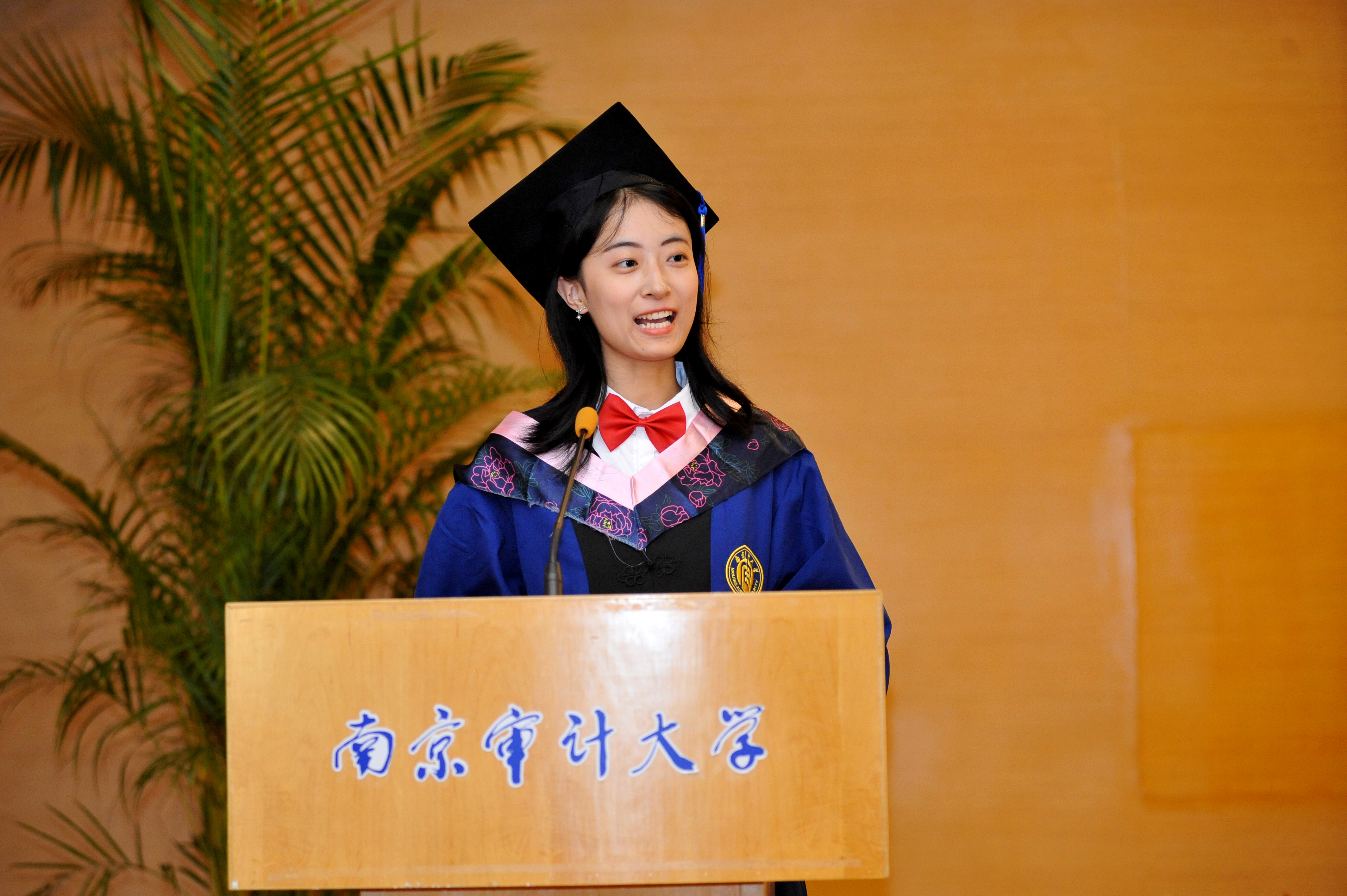 “回首在南审学习与生活的时光中,第一个字是“美”,美的是可以当壁纸的每一帧画面、朋友圈九宫格装不下的景色;第二个字是“高”,高的是八十一阶的爬山路、高效率的办事风格,是高素质、高层次的人才培养;第三个字是“富”,全面而系统的课程知识、前沿的研究视角与方法、从容乐观的人生态度,均是我们宝贵的财富。最后一个字是“强”,无论今后身处何方何地,愿我们都能在各自岗位上尽情施展才华,把青春播撒在民族复兴的征程上,把光荣镌刻在历史行进的史册里,焕发出昂扬向上的时代风貌!”