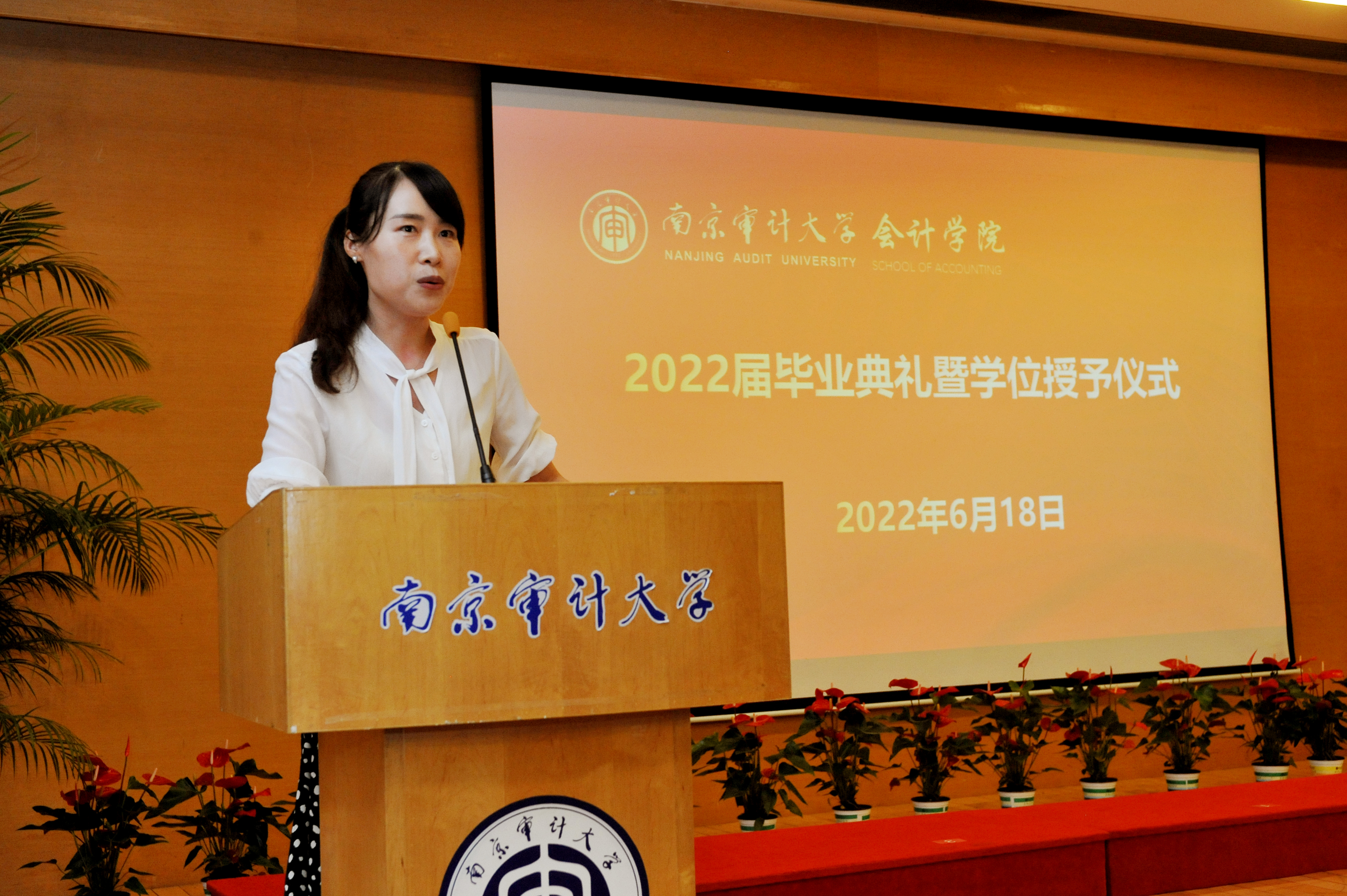 “首先,作为学生要懂得感谢自己、老师、校友。希望同学们做到以下五点,第一,要爱国奉献,做负责任的当代中国人;第二,践行南审的校训,始终保持会计人基本素养,不断学习,保持公正;第三,追求卓越,做一个不负韶华的现代职业人;第四,开放包容,学会换位思考,在数字经济时代,要勇于接受新事物;第五,珍爱自我,碰到挫折,要自信、自省、自爱。最后以十六个字送给同学们:随心而走,逐光而行,绽放自我,造福社会。”