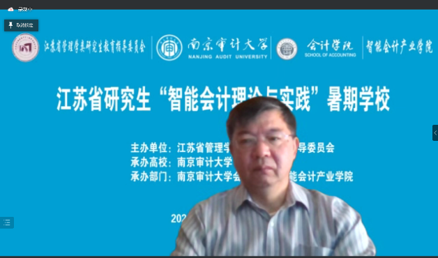 随后,仲伟俊代表江苏省管理学类研究生教育指导委员会致欢迎词。仲伟俊指出,在数字经济高速发展的大背景下,以“大智移云”为代表的信息技术已经融入经济社会的各个层面,由此会计范式以及会计处理程序都将面临巨大变革,此次“智能会计理论与实践”暑期学校的开班正是顺应了经济社会发展的潮流,具有极强的时代背景,对于研究生学术视野和科研能力的拓展与提高具有显著的推动作用。仲伟俊教授充分肯定了本期研究生暑期学校的办学理念、教学计划与授课安排,希望学员们能够抓住机遇,学有所成。