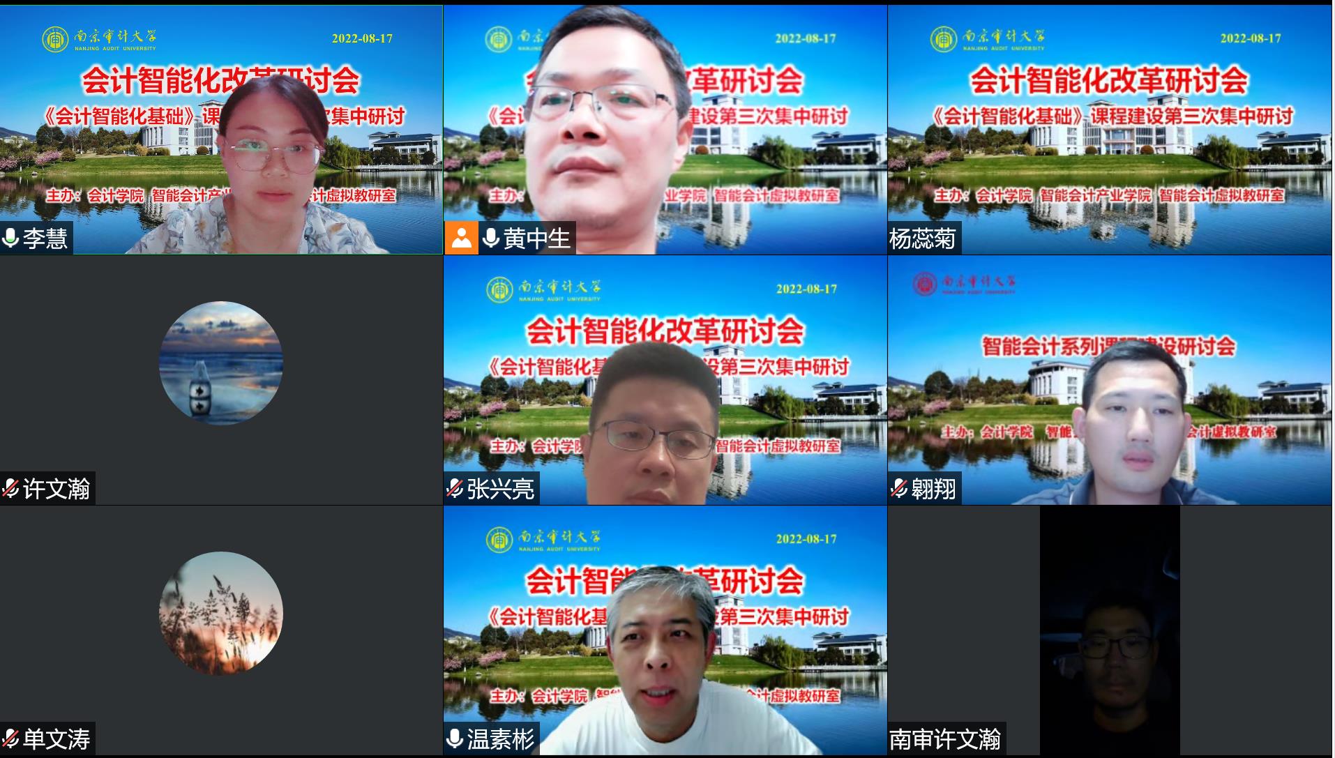 《会计智能化基础》课程组集中备课会在线上腾讯会议室召开。本次研讨会由温素彬院长主持,黄中生副院长、张兴亮系主任、单文涛老师、蔡显军老师、许文瀚老师、杨蕊菊老师、李慧老师等课程授课老师参加。
