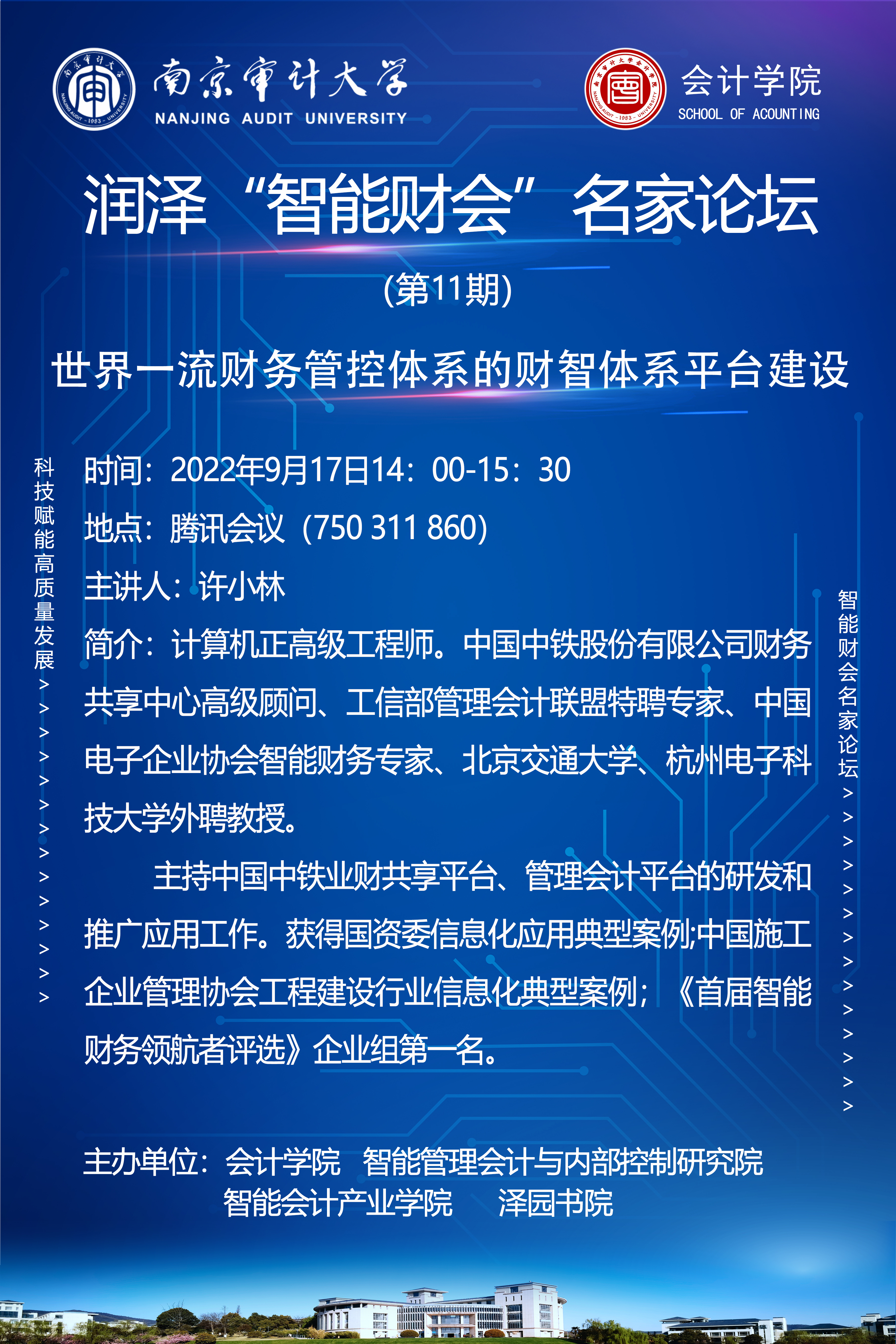 润泽“智能财会”名家论坛第11期:许小林-世界一流财务管控体系的财智体系平台建设