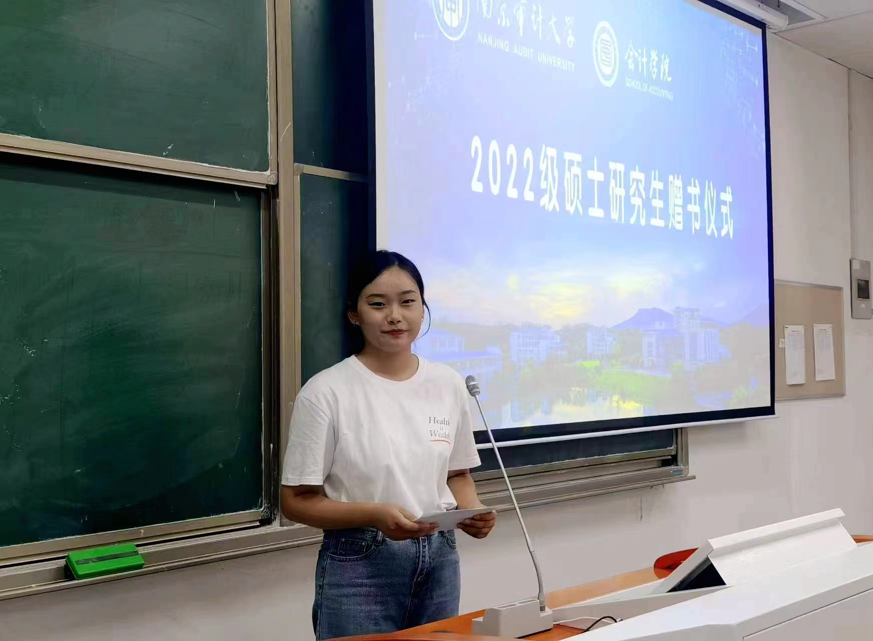 第一项议程由温素彬为2022级新生代表赠送两份入学礼,即学院宣传画册和《逆商》、《坚毅》两本经典著作。每一位新生通过画册能够全面了解91色情网 ,通过书籍能够培养迎难而上的精神和坚毅的品格,释放激情与坚持的力量,超越自我,永攀高峰。随后,由新生代表杨盈盈同学代表全体研究生新生对91色情网 表示感谢。