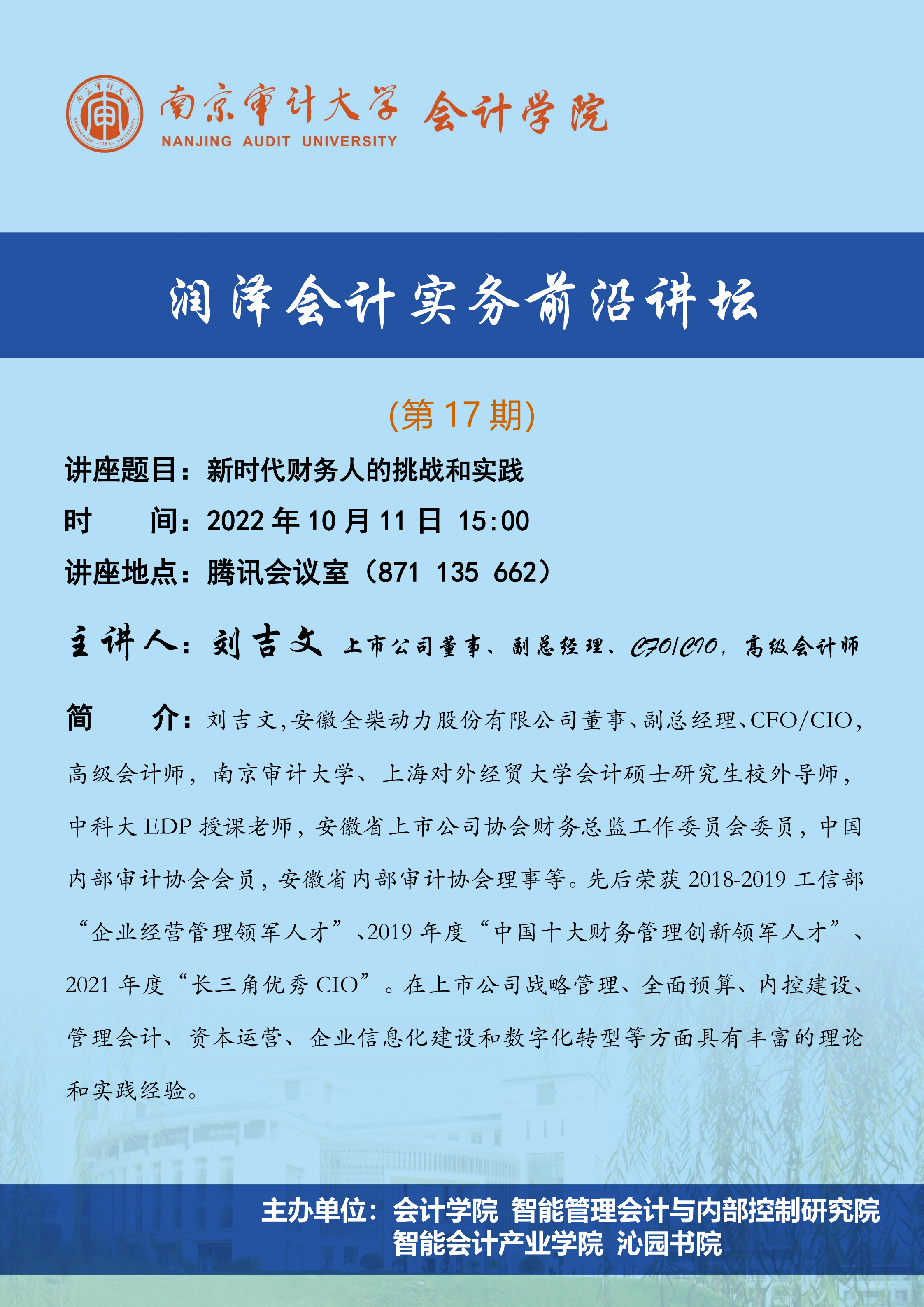 润泽会计实务前沿讲坛第17讲:刘吉文-新时代财务人的挑战和实践