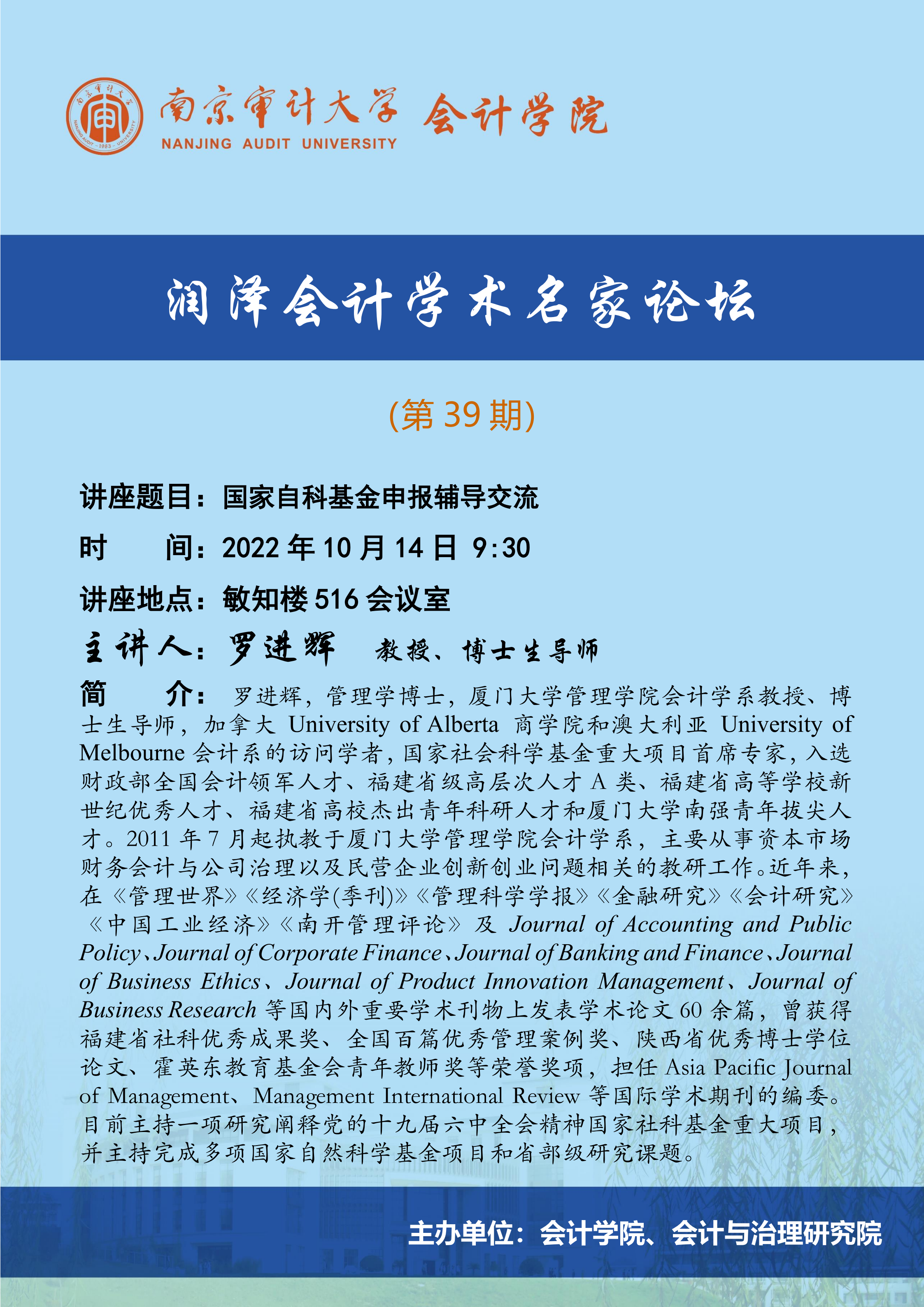 润泽会计学术名家论坛第39期:罗进辉-国家自科基金申报辅导交流