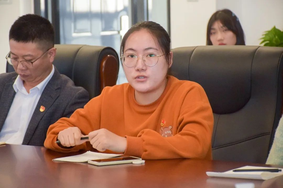 研究生代表陈舒婷提到习近平总书记在科教兴国这一部分指出要培养德智体美劳全面发展的社会主义建设者,作为青年,尤其是青年党员,我们更要以高标准、严要求规范自身;会中提到“自信自立,守正创新”,这也是规范我们研究生生活学习工作的准则,充分发挥当代大学生自信自立自强的精神风貌,将创新精神运用到论文写作中来,努力学习,完善自身,不忘初心,砥砺前行,努力成为社会主义接班人。