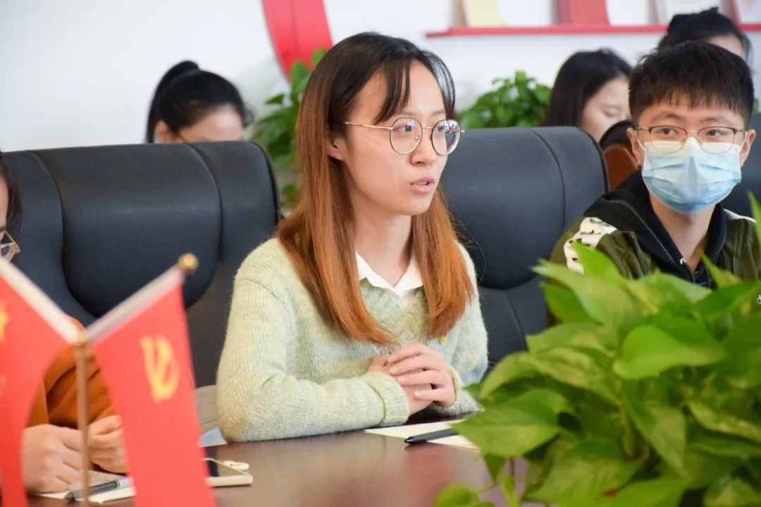 研究生代表李潇琦认为党的辉煌成就来之不易,作为一名研究生支部委员,未来应当更加积极主动承担支部建设工作,从细节上落实党建发展工作的规范要求;作为一名研究生党员,未来应当紧紧围绕党中央和国家的战略规划,拓展自己的科研方向,为国家建设发展贡献青春力量。