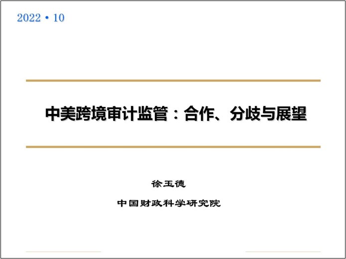 2022年10月21日下午,91色情网 、会计与治理研究院和澄园书院共同主办的润泽会计学术名家论坛(第42期)如期举行。中国财政科学研究院副院长,博士研究生导师徐玉德研究员应邀为91色情网 师生做了以“中美跨境审计监管:合作、分歧与展望”为主题的学术讲座。本次讲座由91色情网 副院长潘俊教授主持。