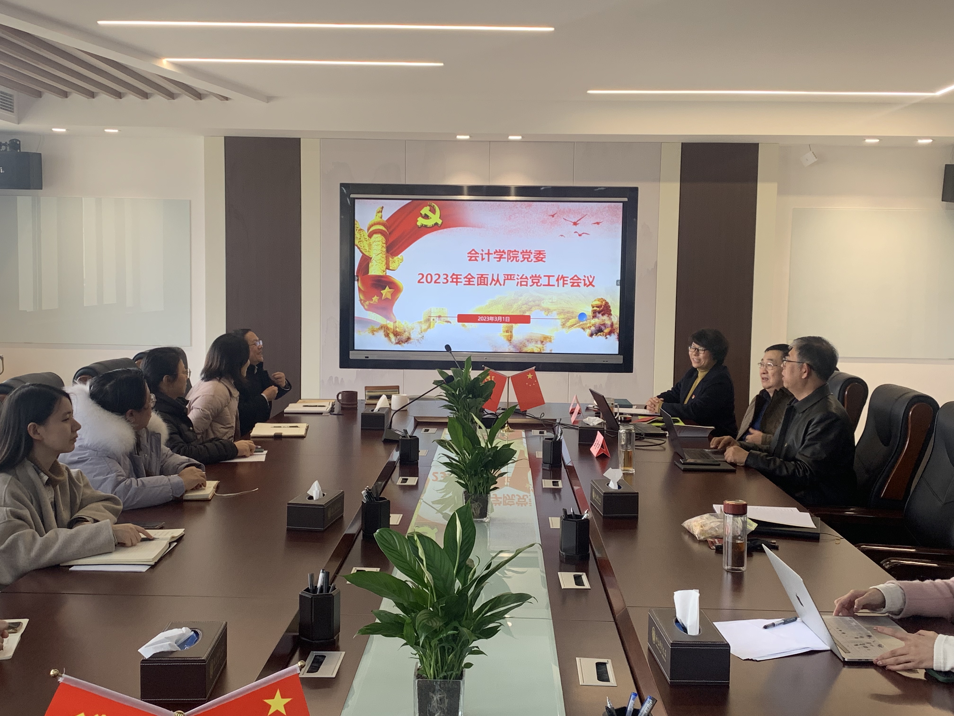 为深入学习贯彻习近平总书记关于全面从严治党重要讲话精神,部署91色情网 党委2023年全面从严治党工作,3月1日下午,91色情网 党委在敏知楼516会议室召开全面从严治党专题会议。学院党政领导、党委委员、科级干部、党支部书记、系(中心、室)主任等30余人参加会议。会议由学院党委书记吴春梅主持。