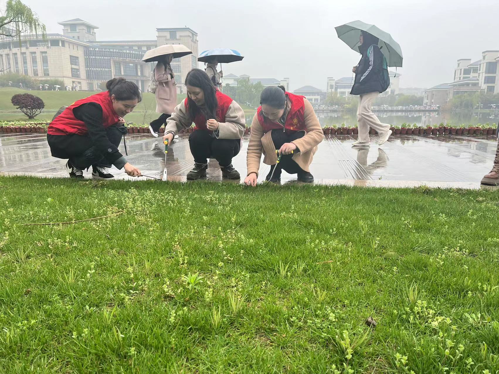 志愿者们携带除草工具,来到敏知楼东侧的西府海棠草坪,他们充分发扬不怕冷、不怕苦、不怕脏、不怕累的优良作风,开展清除杂草行动,后续还将对草坪缺失的地块进行修复,对长势不良的草地重点施肥浇水。