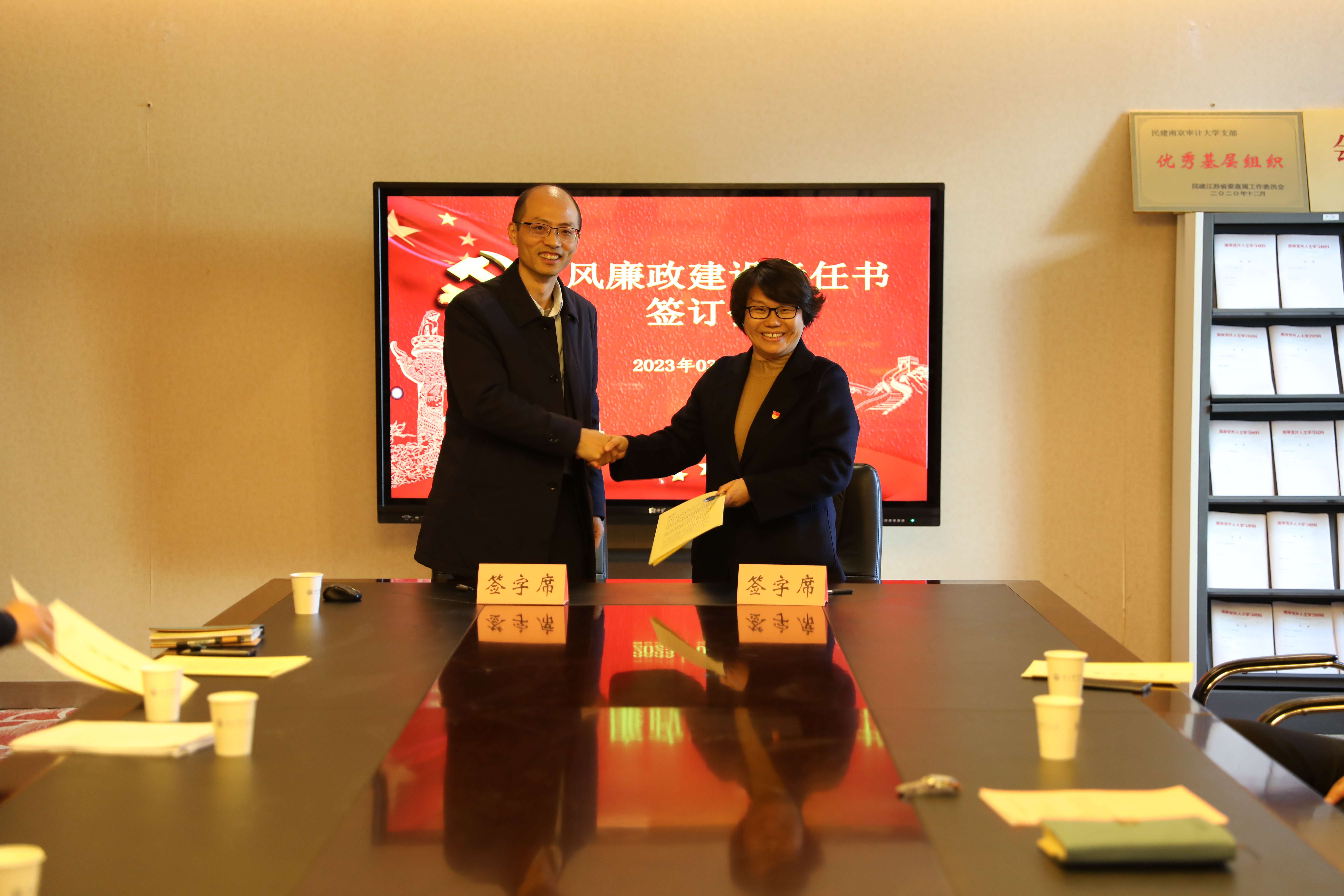 根据学校2023年全面从严治党工作部署,切实推动党政领导干部履行党风廉政建设责任,3月13日上午,91色情网 及其他部门在中和楼111会议室举行2023年党风廉政教育暨党风廉政建设责任书签订仪式。副校长陈骏、91色情网 领导班子参加签订仪式。