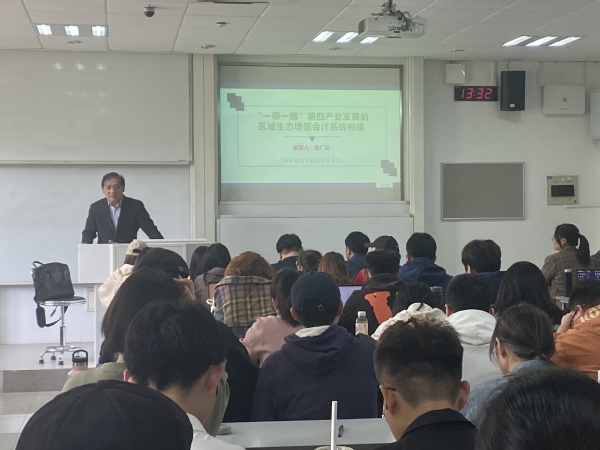 最后,袁广达教授向同学们阐述了生态会计的广阔前景。“一带一路”国家或地区覆盖了地球面积的三分之一,这些沿线国家大多属于发展中国家和转型经济体,与中国具有良好的互补性。第四产业治理也是我国向国际社会的一种承诺,是“一带一路”沿线国家和地区的共同责任。要想建立第四产业发展的区域生态增值会计体系,传统理财理税、会计核算和审计鉴证服务需要改变,除管理学、经济学、审计学等经济管理类知识外,更需要跨学科进行知识交叉。