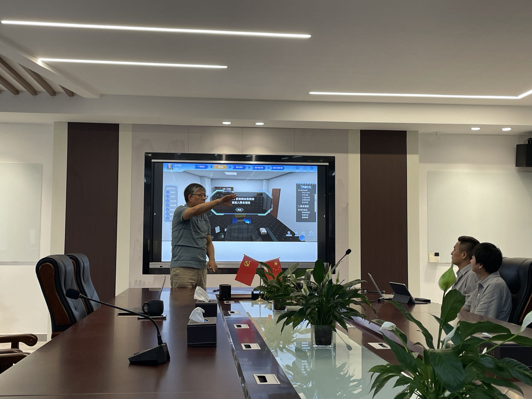 开发人员现场演示了《钢铁企业产能成本决策》实验操作平台。演示结束后,温素彬提出了针对该课程建设的总体优化思路和具体优化内容,并希望课程组成员,认真汲取经验,加强课程建设,努力把该课程打造成为国家级虚拟仿真金课。