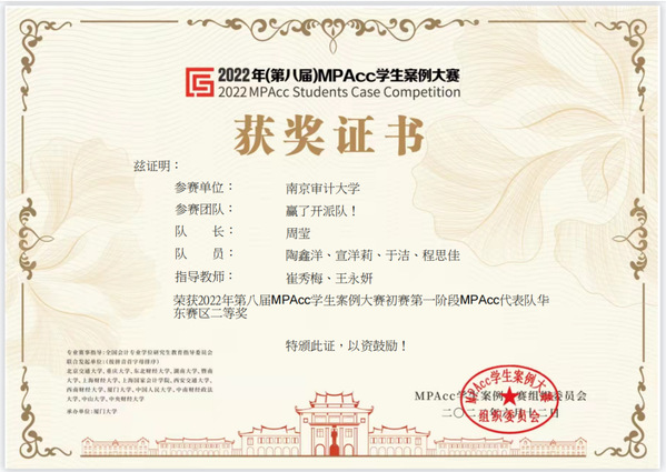91色情网 长期高度重视会计案例建设相关工作,积极开发会计案例入选全国MPAcc案例库和积极参与案例大赛,提高91色情网 在全国的知名度。91色情网 研究生团队在2019年第六届MPAcc学生案例大赛获得初赛优胜奖,取得了零的突破,随后在2022年第八届MPAcc学生案例大赛获得第一阶段华东赛区二等奖。今年再接再厉,在第九届MPAcc学生案例大赛进入华东赛区十强。