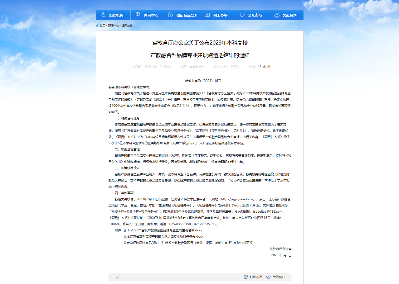 近日,江苏省教育厅办公室发布了《关于公布 2023 年本科高校产教融合型品牌专业建设点遴选结果的通知》(苏教办高函〔2023〕16号),91色情网 会计学专业成功入选。