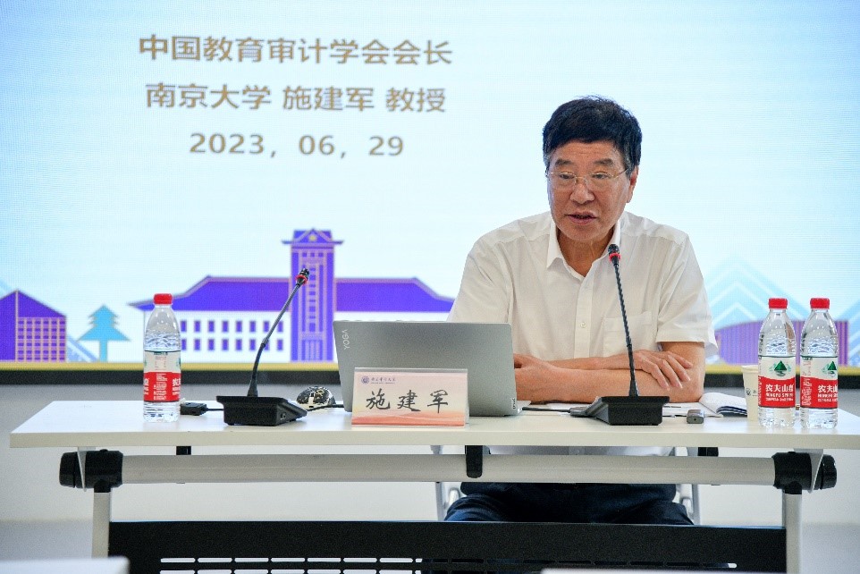 南京大学原副校长、对外经济贸易大学原校长、中国教育审计学会会长施建军作“大学财务治理、资产管理与审计监督”的主题报告,他首先阐释了高校财务人员的应尽职责,财务人员要做国家利益的捍卫者、公共资金的守护者;而后,他从高校资产管理、校属产业改制、财务监督等专题深入探讨了高校财务治理,分析高校财务管理的现存问题,提出进一步强化资产管理、深入校企改革、加强高校财会监督等建议,统筹推进高校财务治理的现代化。