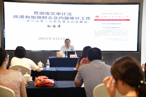 中国审计学会会长,审计署原党组成员、副审计长孙宝厚作“贯彻落实《审计法》改进和加强财会及内部审计工作”的主题报告,他首先回顾了我国审计事业以及《审计法》的出台历程,接着从党的领导、审计监督职责等方面解读《审计法》修订的意义,并对高校管理存在的问题进行了分析,对通过开展审计工作提升高校管理水平给出了相关建议。