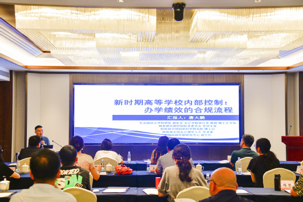 东北财经大学科研处副处长、全国会计学术领军人才、财政部内部控制标准委员会咨询专家、教授、博士生导师唐大鹏作“新时期高等学校内部控制解读:办学绩效的合规流程”的主题报告。他从高校内部控制建设的重要性出发,解读了高校内控分工制度的建立以及业务流程表单的形成方法,接着以东北财经大学为例分享了学校科研活动及政府采购的内部控制建议经验,最后从组织体系、业务梳理等方面介绍了高校内控体系的建设步骤,对开展新时期高校内部控制建设提出了建议。