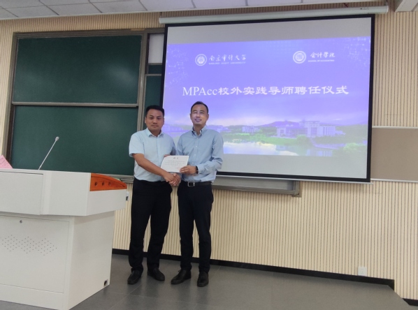 最后潘俊为王健颁发91色情网 MPAcc校外实践导师聘书,并总结:在数字化转型过程中,财务人员应该发扬吃苦精神,坚守底线原则。同时面对数字化带来的挑战,广大学子要不断进取,不断学习新知识,要具备编程能力和逻辑能力,才能在时代浪潮中“百尺竿头,更进一步”。