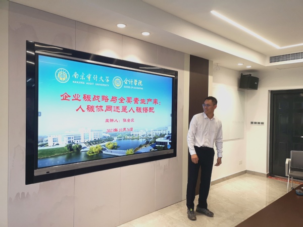 为了提高学术能力,91色情网 通过敏知会计学术沙龙这一学术交流平台组织教师和研究生深入科研交流,共同分析讨论学术问题,激发学术活力和学术创新,促进学术研究。根据学院安排,2023年10月26日敏知会计学术沙龙(第21期)由91色情网 张金泉老师作主题为 “企业碳战略与全要素生产率:人碳协同还是人碳错配?”的学术研讨。