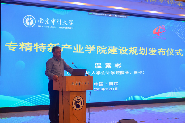 开幕式上,温素彬进行了专精特新产业学院建设规划发布仪式,详细介绍了“一个研究院、三个中心、一个平台”的战略规划。专精特新产业学院将优化人才培养方案,通过产教融合,构建“会计智能化”特色课程的“一体两翼六协同”的课程体系。同时,产业学院以设置“大数据智能风控”方向班的方式,打造专精特新企业与大学协同共建共育共享的优质载体。希望将专精特新企业的先进技术应用于专业建设,打造会计智能化、财务智能化、大数据智能风险管理等专业群,培养技术优先的高质量人才。