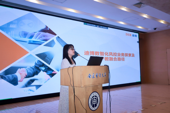 迪博企业风险管理技术有限公司王丹总监以“迪博数智化风控业务探索及产教融合路径”为题,首先介绍了迪博公司的概况,并给大家分析了风险内控合规管理的总体发展趋势;接着,她从大数据智能分析平台、全生命周期数智生产线、数智风控平台、经济活动智能管控平台为例,向与会人员展示了迪博公司的能力技术、产品和行业应用;最后,王丹阐释了迪博公司关于产教融合实施路径和校企拓展合作的可能方式的相关思考。