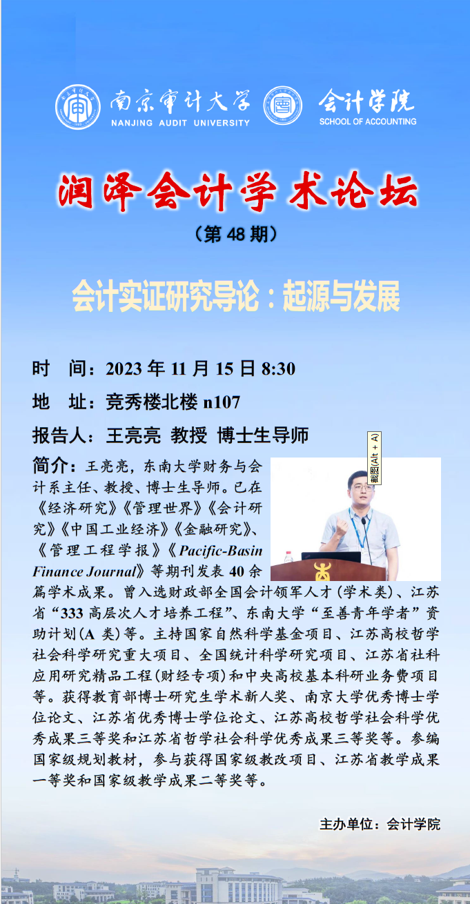 润泽会计学术论坛 (第48期):王亮亮——会计实证研究导论:起源与发展
