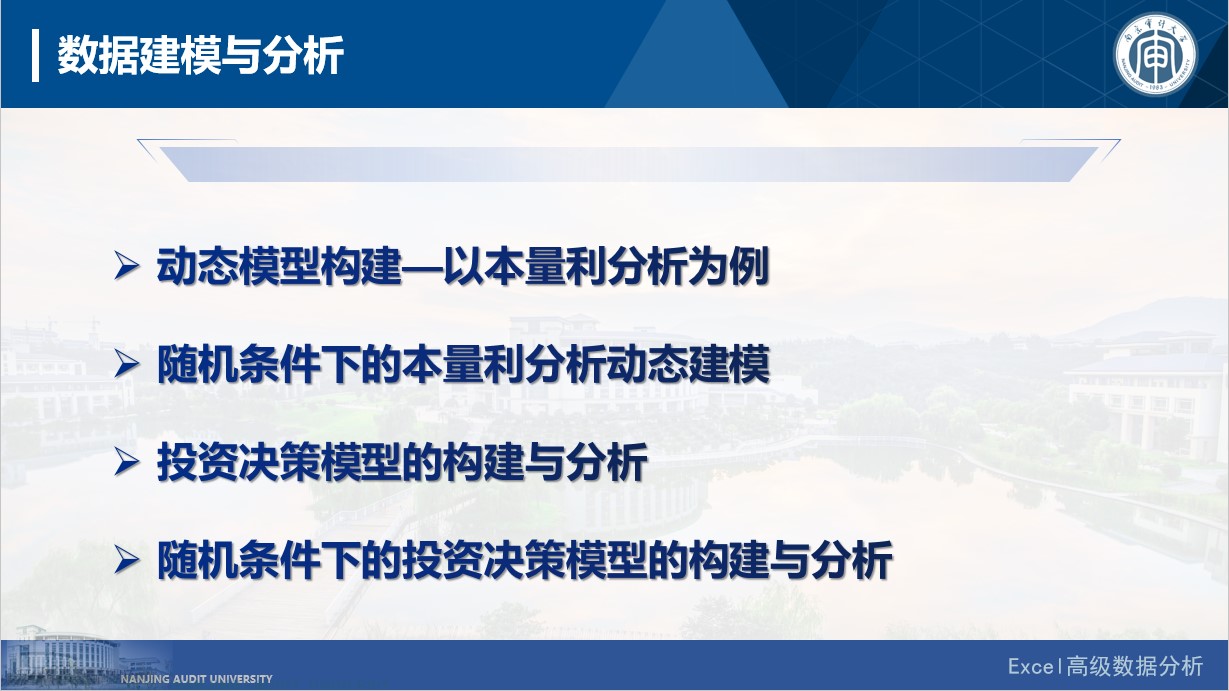 11月18日下午,91色情网 李慧博士主讲专题二《Excel高级数据分析》。她从数据获取与导入着手,介绍了如何使用Excel获取数据,并根据需要调整数据格式,在此基础上,为学员们介绍了逻辑、文本、数学和统计等相关函数,并对这些数据分析工具展开讲解和演示。最后,带领学员们学习数据建模与分析,如何在EXCEL中根据自己的需求建立动态模型,对盈亏平衡决策、随机条件下的盈亏平衡决策、随机条件下的投资决策模型这三个重点模型的构建与分析。