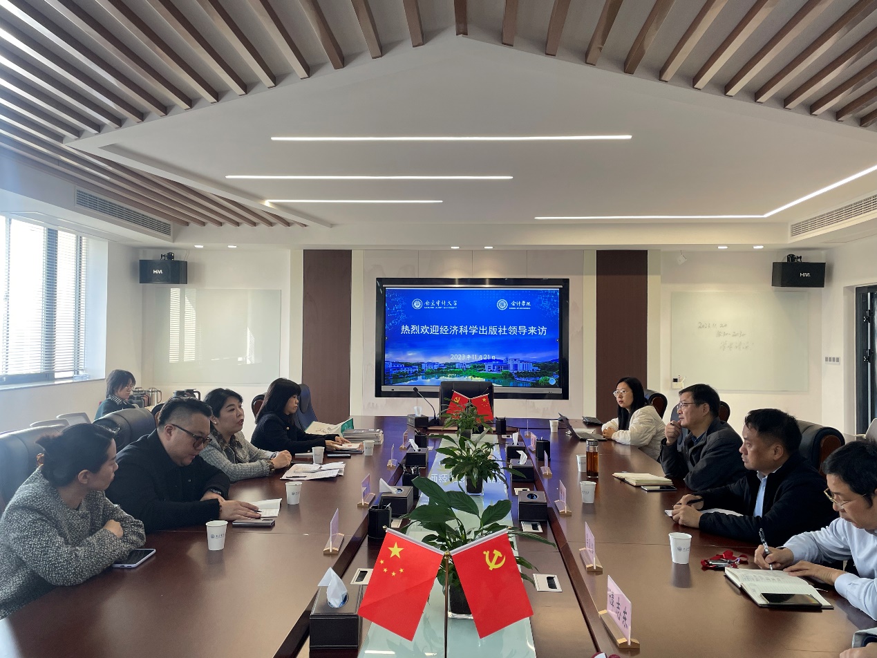 11月21日上午,经济科学出版社财税社杨洋、中财国培张宇博等一行到访91色情网 ,双方围绕“教材与专著出版”等展开交流。91色情网 副院长黄中生、副书记兼副院长潘俊以及部分教师参加会议。黄中生主持会议。
