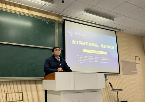 11月15日上午,东南大学财务与会计系主任、博士生导师王亮亮教授作主题为“会计实证研究导论:起源与发展”的报告。王亮亮教授首先系统回顾了20世纪80年代以来国内外的会计实证研究历程及成果,并对国内外会计研究案例进行深入分析,随后,结合自己的心得体会,从三个角度为同学们详细阐述了会计实证研究与会计规范研究的联系与区别。