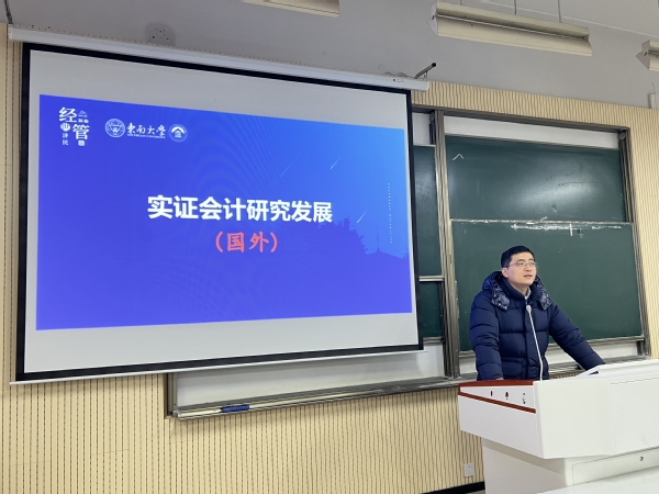论坛的开始,王亮亮首先对国内外实证会计研究发展进行了回顾与扩展,以“心理学与会计”为出发点,向同学们介绍了“交叉学科研究”这一会计领域热点,扩展同学们的研究思维,鼓励同学们成长为复合型人才。王亮亮结合自己的个人经验嘱咐同学们,随着会计研究的深入,对于会计实证研究从一开始的无从下手,到后来的学有所成,同时也介绍了研究的理论基础及常用软件,激励同学们要在实证会计研究迎难而上,坚持下去。