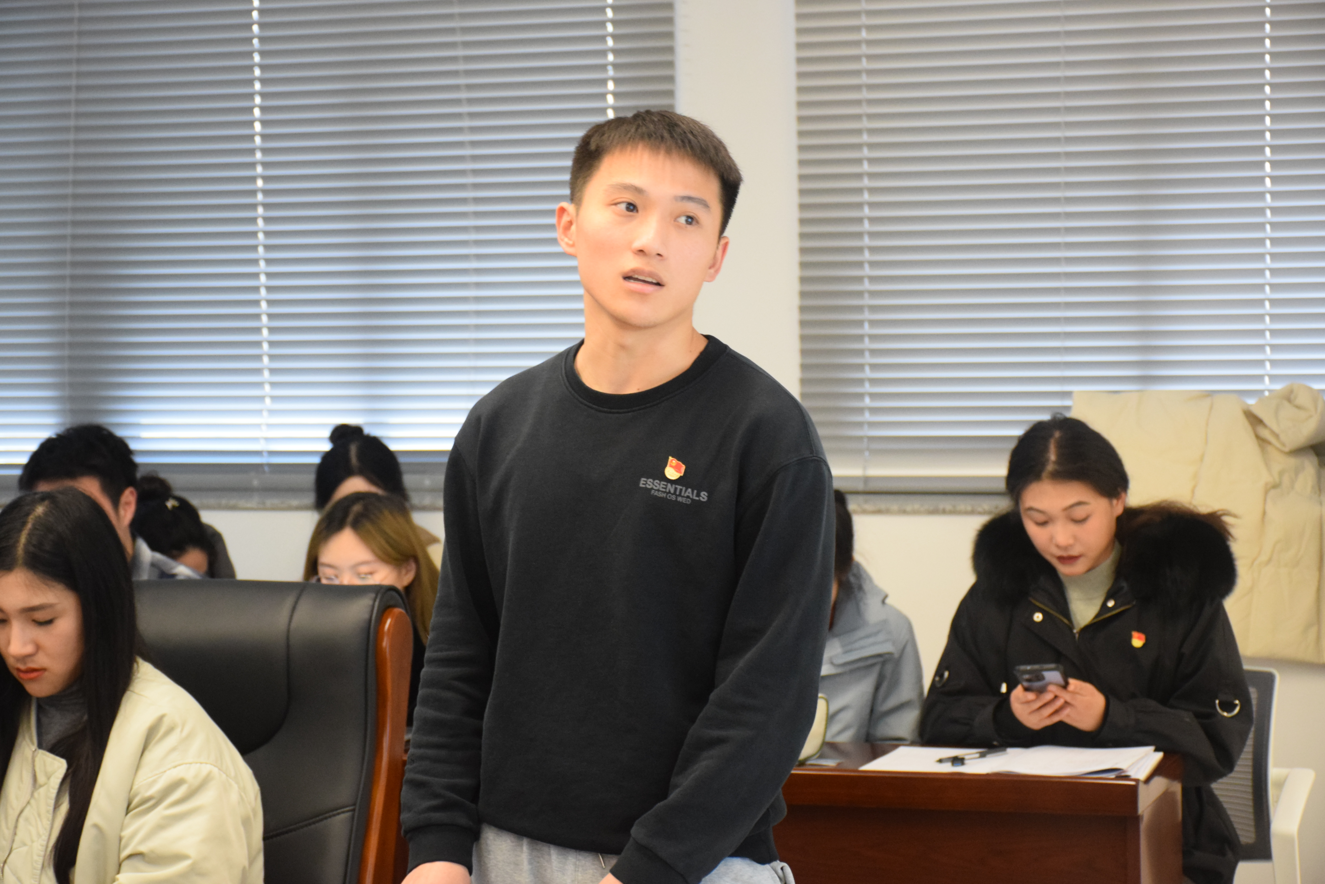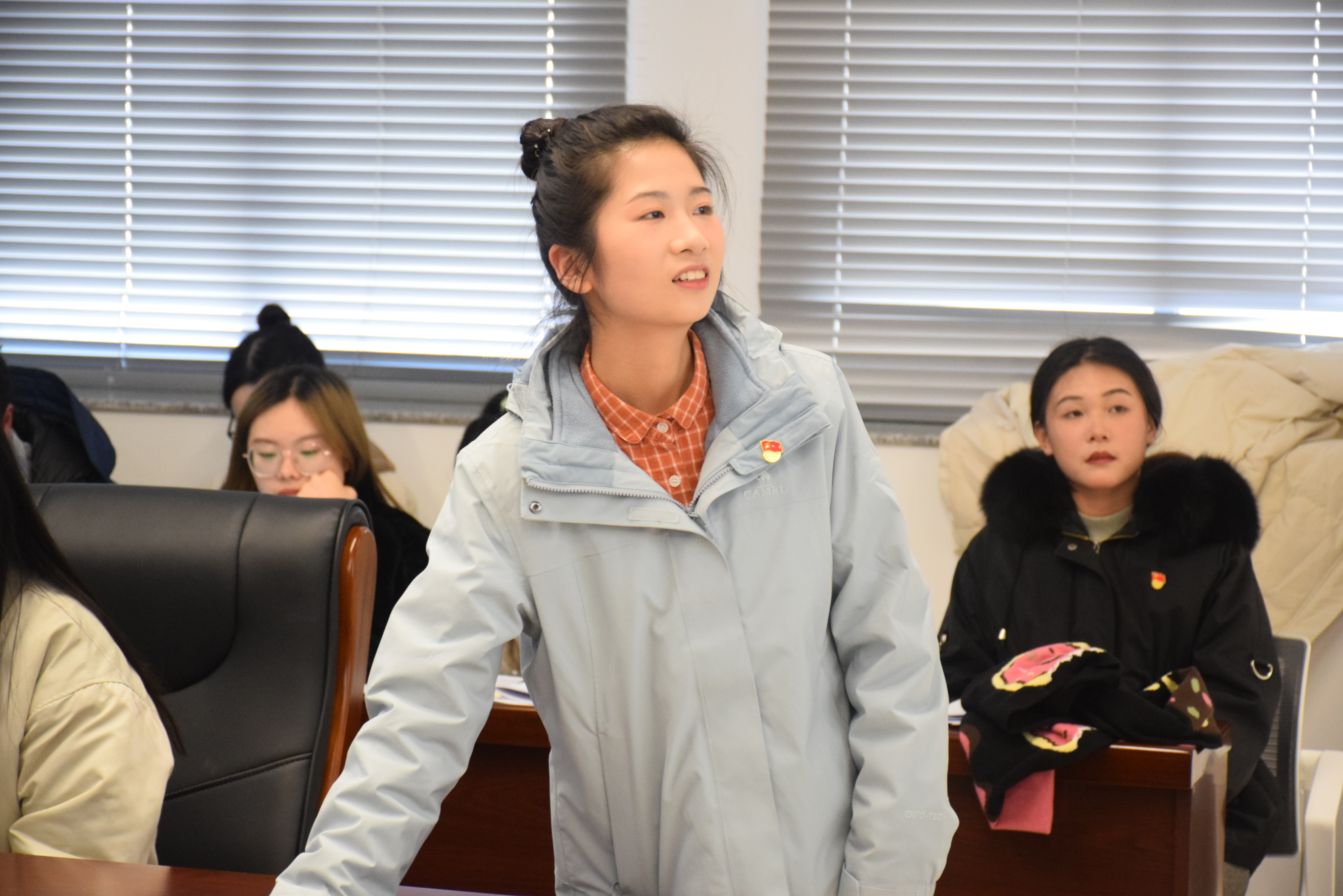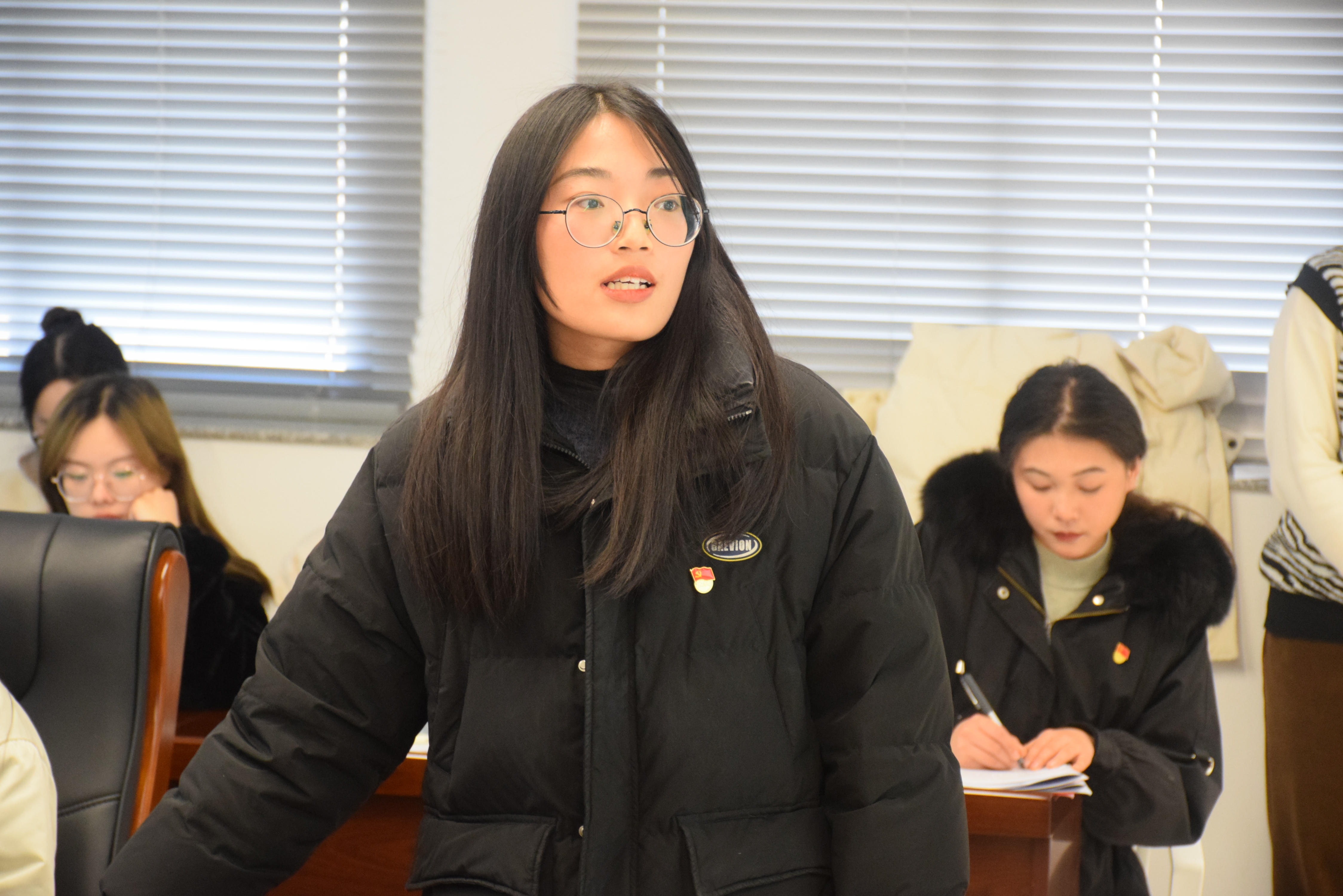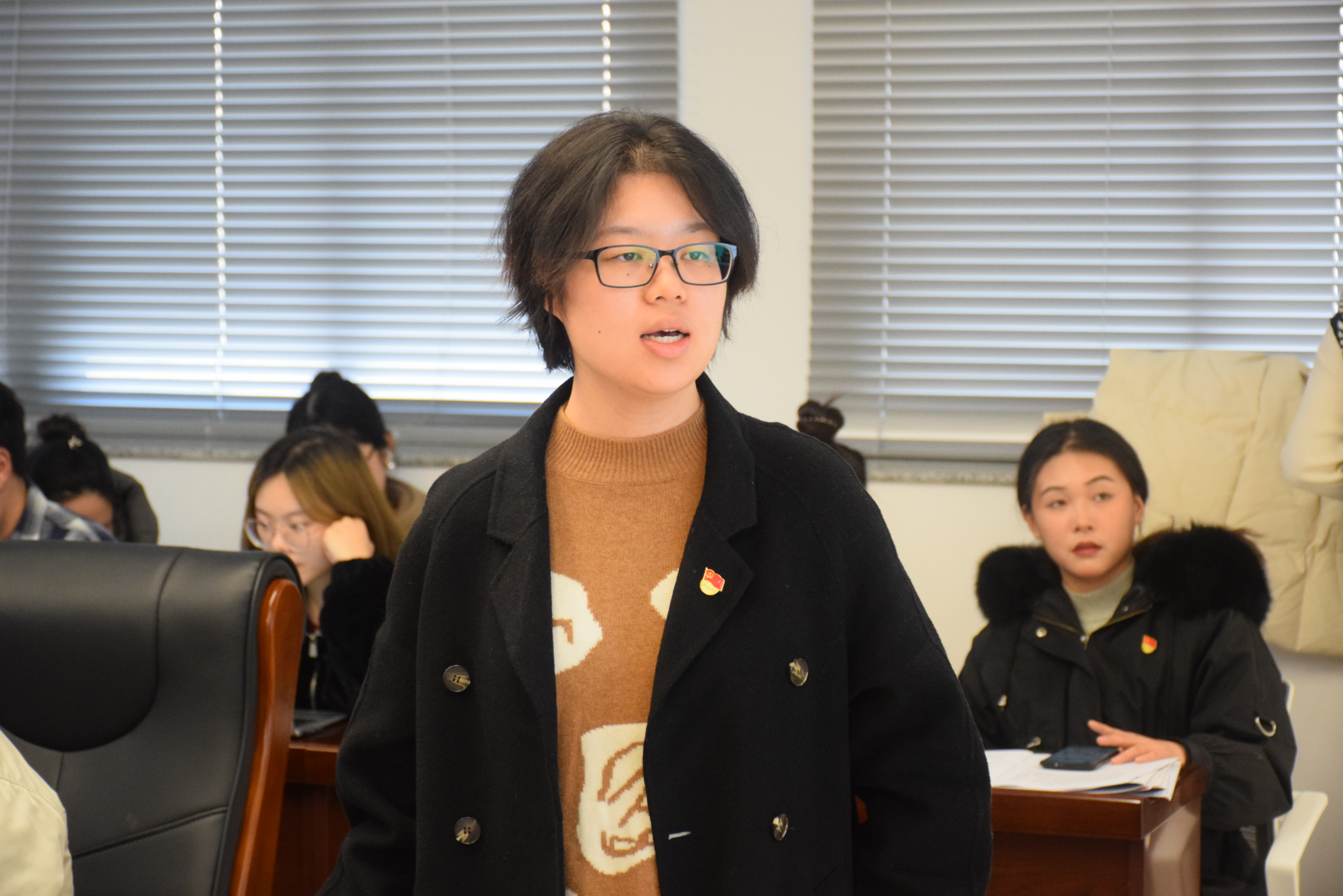 吴春梅首先强调学院党委会加强对学生党员的教育管理,进一步提升党员的思想理论素养水平,并提出党员发展转正答辩制,严把党员发展质量关;其次,鼓励党员同志们要树立终身学习的观念,不断学习党的理论知识,积极参加社会实践,着力提升个人本领;最后,结合学校最新新媒体管理办法以及学生管理规定,对党员同志提出三点要求,第一,严格自我约束管理,严禁学术不端行为;第二,树立正确的网络观,持续推动良好生态网络建设,营造积极健康、向上向善的网络文化;第三,树立大局意识,党员要做到正确认识大局、自觉服从大局、坚决维护大局,自觉为党和人民的事业贡献自己的力量。